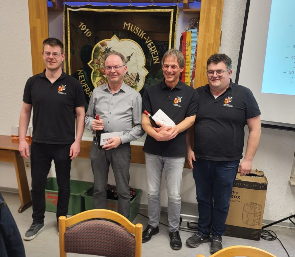 Die Versammlung bot zudem einen passenden Rahmen, um den bereits beim Konzert offiziell geehrten Musikanten Präsente als Zeichen des Dankes und der Anerkennung zu überreichen. Für zehn Jahre aktive Mitgliedschaft wurden Julian Bannier, David Bausch, Christoph Emhart und Veronika Schmid gewürdigt. Seit 20 Jahren sind Tamara Emhart, Theresa Gaupp und Sabrina Spöcker Teil des Musikvereins, seit 30 Jahren Elisabeth Brölz. Auf 40 Jahre aktives Musizieren blicken Stefan Eberhart und Martin Hennes zurück. Für beeindruckende 50 Jahre Vereinstreue wurden Karl-Heinz Guter und Klaus Spöcker besonders hervorgehoben. Der Verein dankte allen Geehrten herzlich für ihre jahrzehntelange Unterstützung, ihr musikalisches Engagement und ihre Verbundenheit zum Verein.
